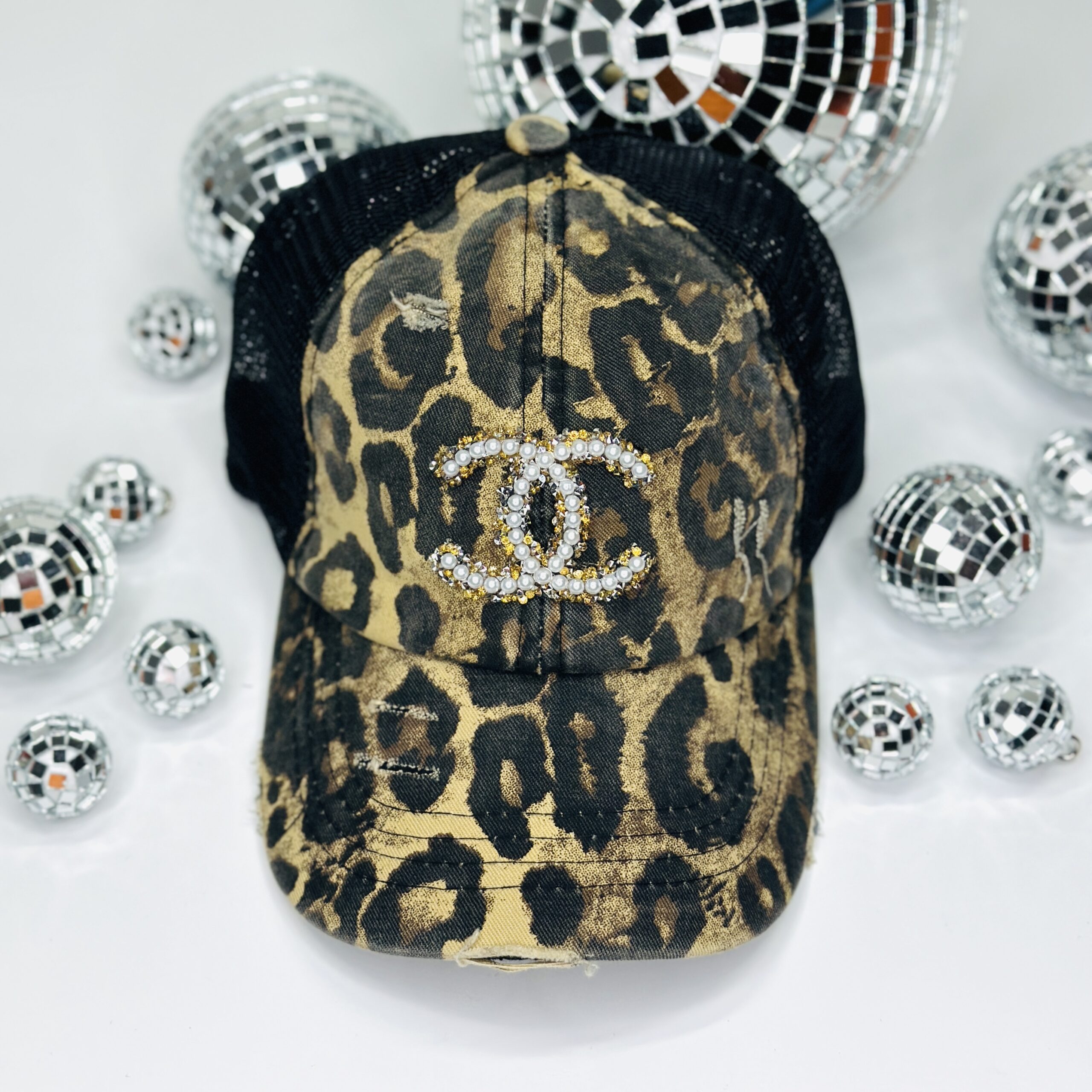Leopard Distressed Cap with Pearl/Gold quantity
